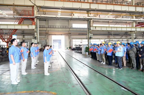 6月中旬開始,經(jīng)過認(rèn)真排練的黨史宣講快板小分隊正式走進(jìn)公司各部室、車間、班組,開展三走進(jìn)巡演,分別深入裝配車間、鉚焊車間、準(zhǔn)備車間、涂裝車間、質(zhì)量保證部、營銷分公司等部室班組,為炎炎夏日奮戰(zhàn)在一線的職工群眾們送去了黨史知識大餐。鏗鏘有力的快板詞,慷慨激昂的說唱,吸引黨員干部、職工群眾駐足觀看,頻繁互動,不時響起熱烈的掌聲。