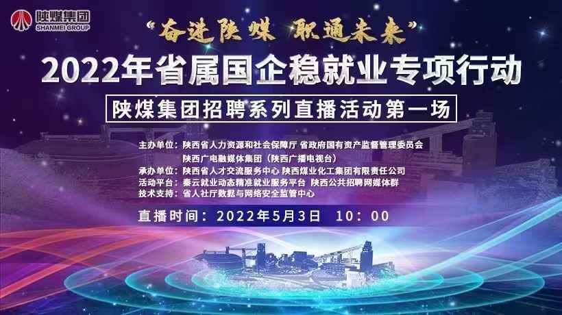 由陜西省人力資源和社會保障廳、陜西省國有資產(chǎn)監(jiān)督管理委員會、陜西廣電融媒體集團(陜西廣播電視臺)主辦,陜西煤業(yè)化工集團有限責任公司、陜西省人才交流服務(wù)中心承辦的“陜煤集團高校畢業(yè)生招聘周”活動于4月29日正式啟動。