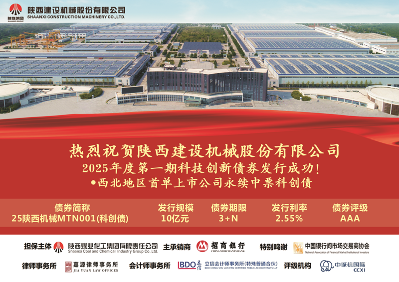 6月26日,陜西建設(shè)機(jī)械股份有限公司(以下簡(jiǎn)稱(chēng)“建設(shè)機(jī)械”)成功發(fā)行2025年度第一期科技創(chuàng)新債券,發(fā)行規(guī)模10億元,票面利率2.55%,發(fā)行期限3+N年,債項(xiàng)評(píng)級(jí)AAA。 本次中期票據(jù)簡(jiǎn)稱(chēng)“25陜西機(jī)械MTN001(科創(chuàng)債)”,由陜煤集團(tuán)提供連帶責(zé)任保證擔(dān)保,招商銀行擔(dān)任獨(dú)家承銷(xiāo)商。建設(shè)機(jī)械充分借助中國(guó)銀行間市場(chǎng)交易商協(xié)會(huì)大力推廣債券市場(chǎng)“科創(chuàng)板”的有利政策,成功發(fā)行西北首單上市公司科技創(chuàng)新債券,也是陜西省屬企業(yè)首次發(fā)行次級(jí)永續(xù)中期票據(jù)。作為陜煤集團(tuán)裝備制造板塊核心企業(yè),建設(shè)機(jī)械自2004年在上海證券交易所掛牌上市(股票代碼:...